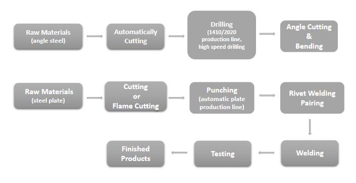 Angle steel tower is a type of self-supporting towering steel structure made of angle steel. The whole tower is made up of angle steel, connecting steel plates and bolts, which are divided into three major parts that are tower head, tower body and tower legs. Additional wire pulling part is also included for the wire pulling tower. Connected in shear by bolts, the poles are mainly made up of single equilateral angle steel or combined angle steel of Q235 and Q345, which are hot-dip galvanized for corrosion protection.